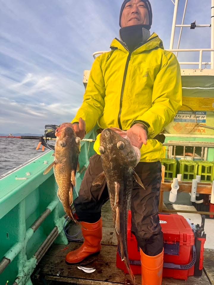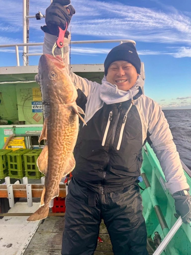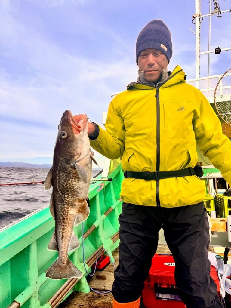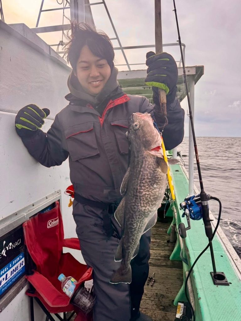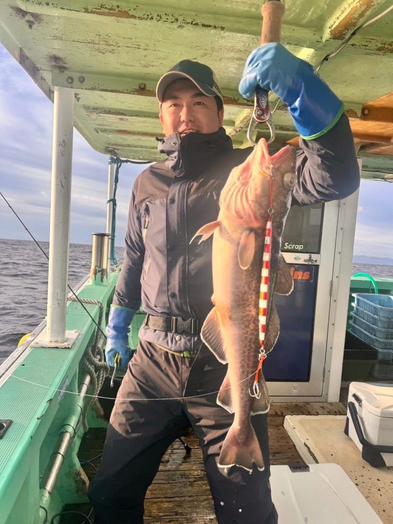 エサとジグで初真鱈出船、例年通り出だし好調、白子がパンパンになると渋くなるけど今はパクパクモード、白子も程よく入ってます。😊🎣